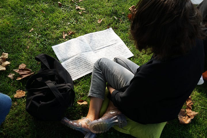 Also, I thought I might share news of a recent publication that’s come about through an ongoing conversation and collaboration with Dana Michel, who is featured in the very first dialogue of Convivialities. An excerpt of our Yellow Towel: A Score – an editorial work that engages with the choreography of Dana’s Yellow Towel – appears in the recent issue of the Coreia, an excellent journal focused on performance and critical writings based in Portugal. Here are a few images of the publication from the launch event for the issue: